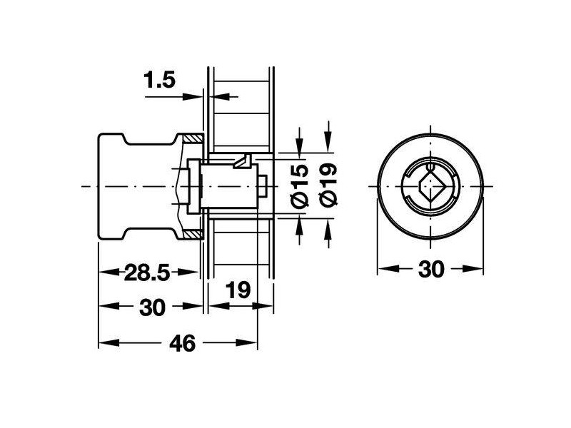 0.00 грн229.80.620 Ручка к замку SYMO левая 30 мм D30 мм для толщини 19 мм Hafele