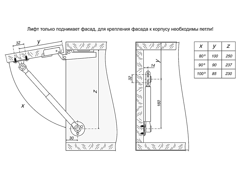 - Тип подъемника: Открывание вверх