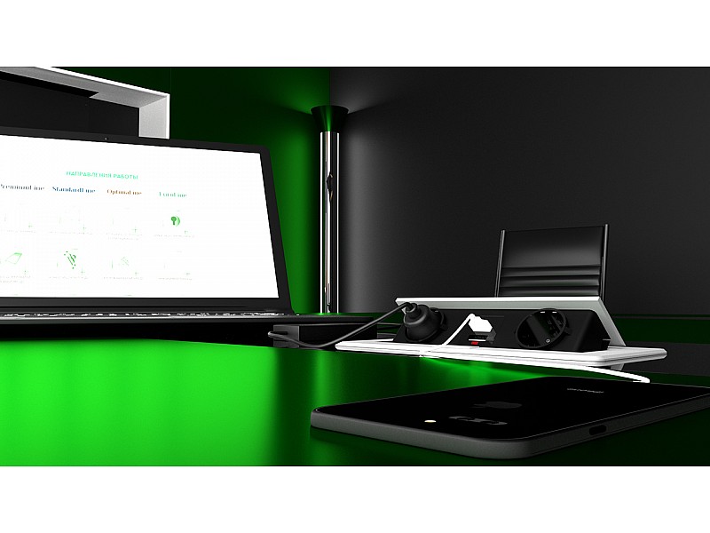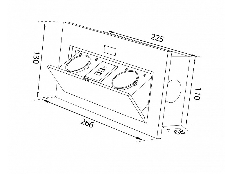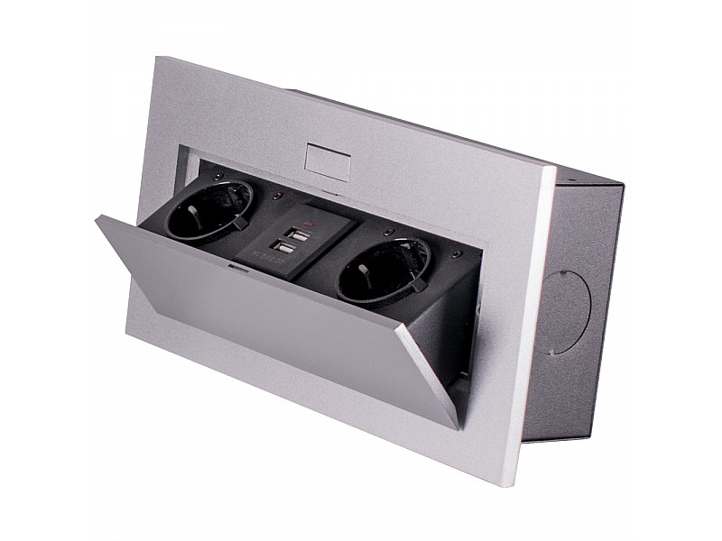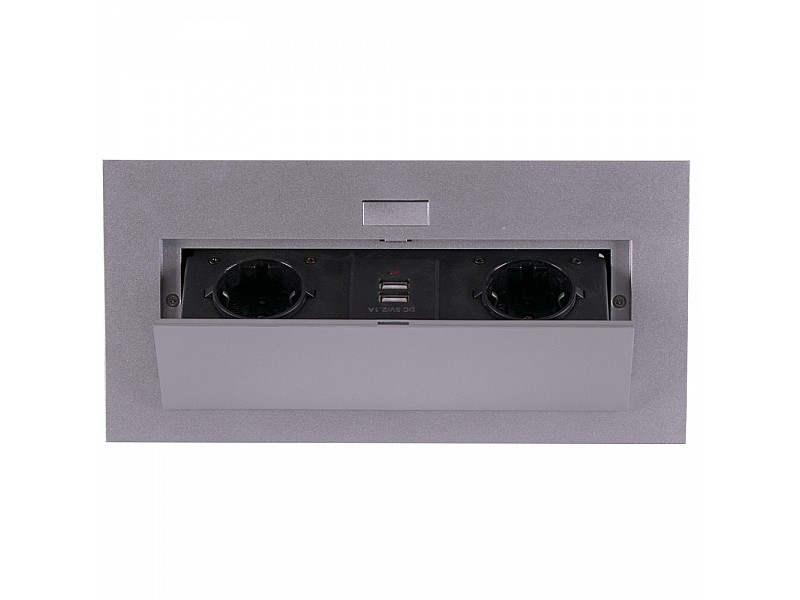 0.00 грнБлок врезной на 2 розетки и 2 USB разъёма с подъёмной крышкой Алюминий