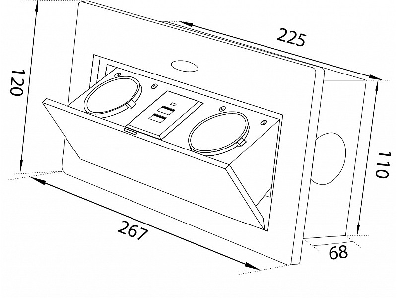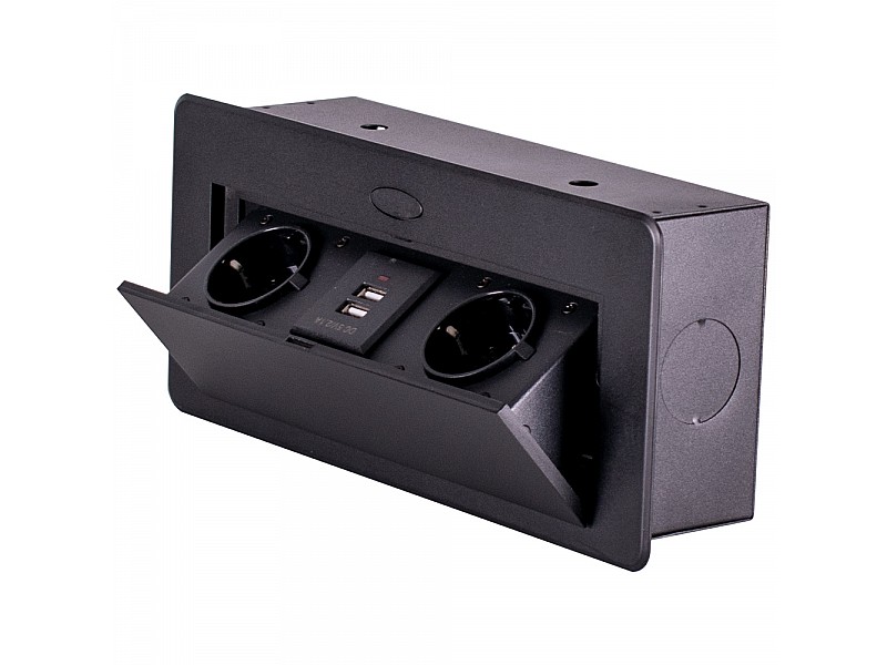0.00 грнБлок врезной на 2 розетки и 2 USB разъёма с подъёмной крышкой Чёрный