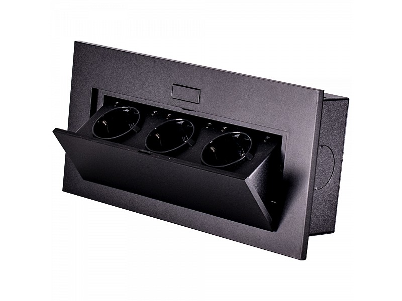 0.00 грнБлок врезной на 3 розетки с подъемной крышкой Чёрный