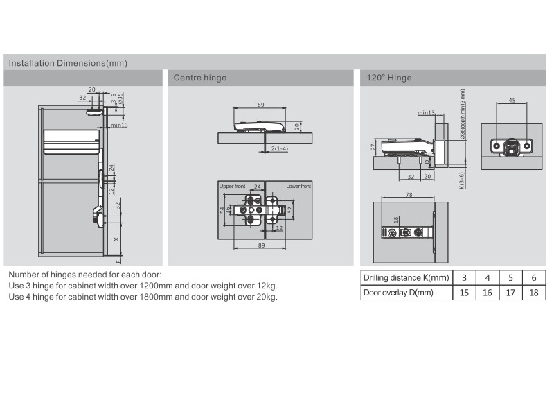 - Угол открывания, градусов: 102° -115°