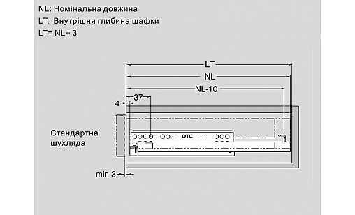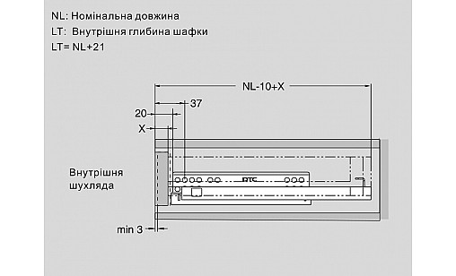 0.00 грнДТС Напрямна прихованого монтажу L-400 часткового висуву G10C-400-H-X
