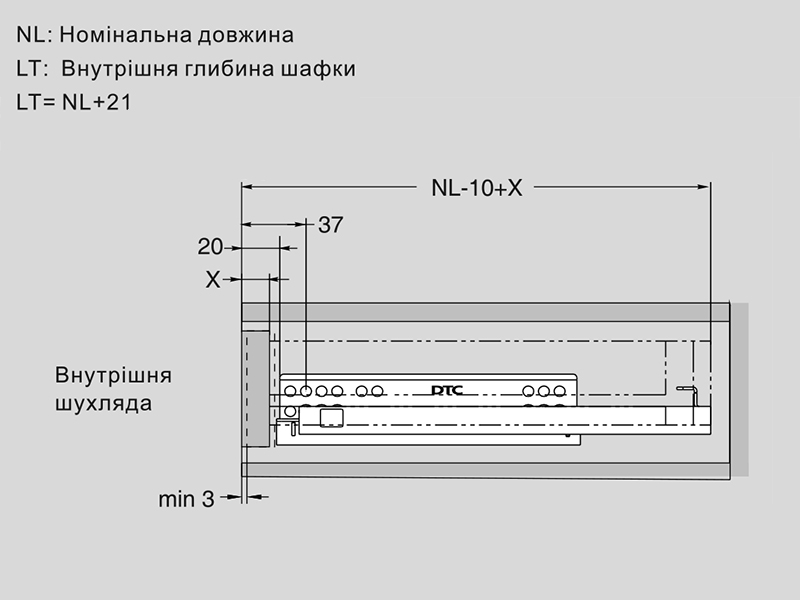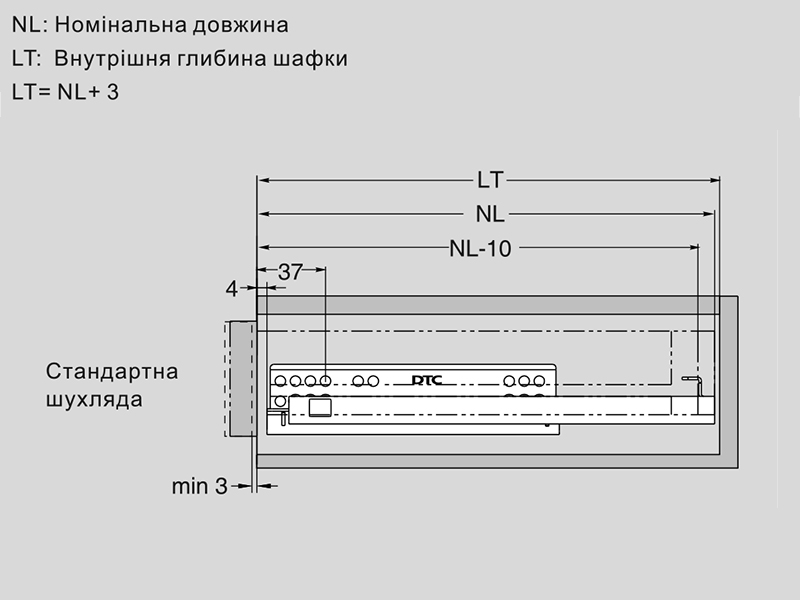 ДТС Напрямна прихованого монтажу L-400 часткового висуву G10C-400-H-X