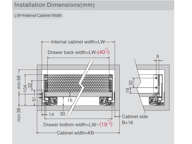 - Тип выдвижения: Полное выдвижение механизм Tip-On