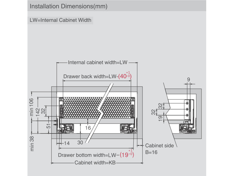 - Тип выдвижения: Полное выдвижение механизм Tip-On