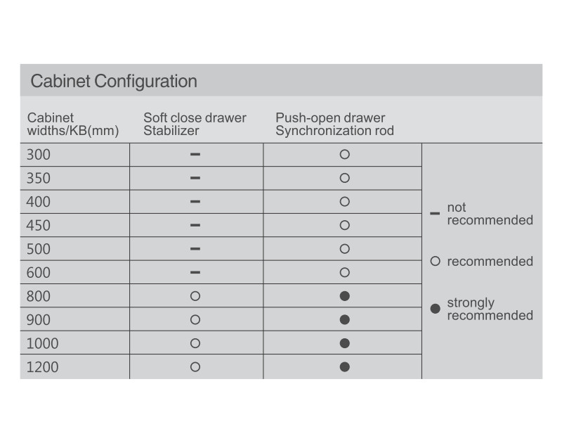 - Тип выдвижения: Полное выдвижение механизм Tip-On