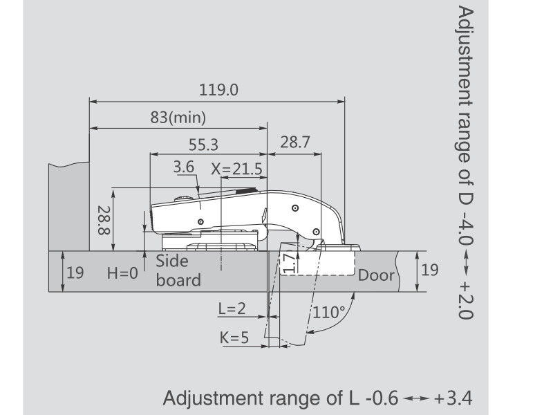 - Кут відкривання, градусів: 90°