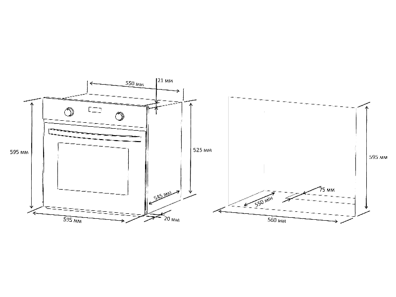 - Розмір ніши, мм: 565*595*595