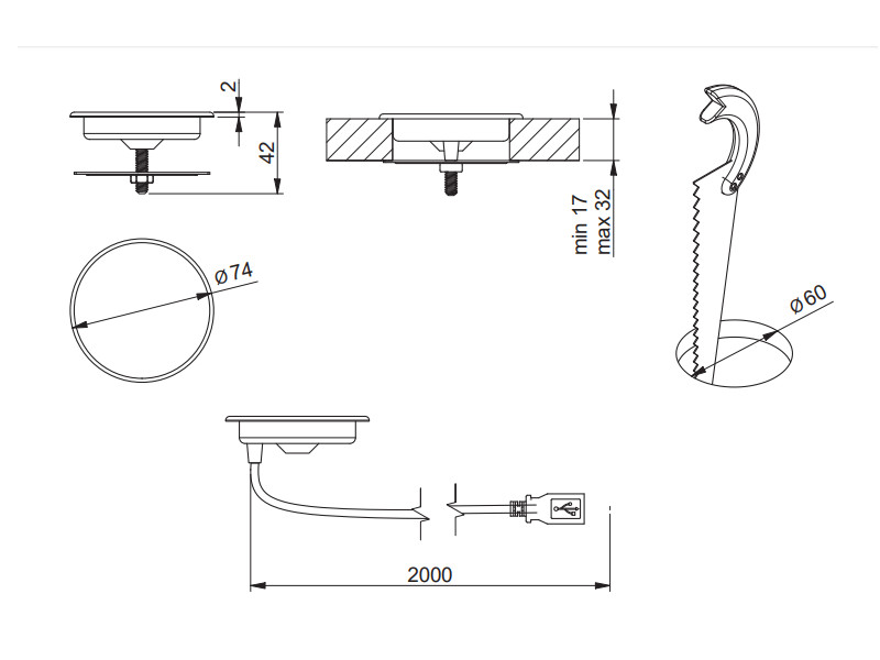Бездротовий зарядний пристрій врізний LUX AE-ZLADLUX-40 GTV