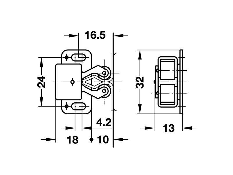 244.01.903 Подвійна роликова защіпка, сталь, оцинкована Hafele