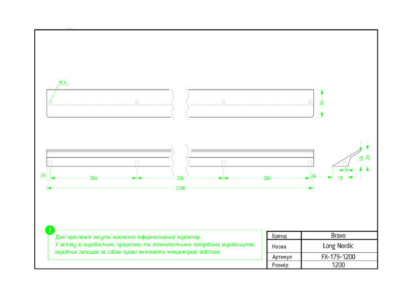 - Довжина, мм: 1200