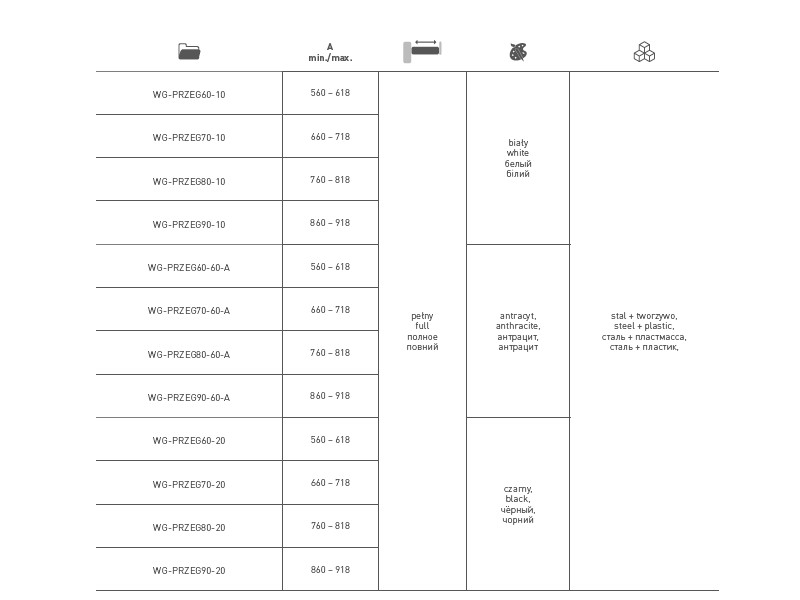 0.00 грнПолиця з перегородками з дотягом ELITE 700 мм графіт WG-PRZEG70-60-A GTV