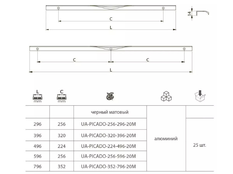 0.00 грнРучка PICADO 256/296/18мм Алюміній UA-PICADO-256-296-05 GTV