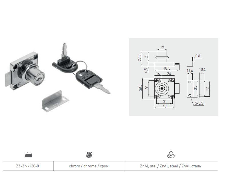 0.00 грнЗамок квадратний хром 138 ламаний ключ ZZ-ZN-138-01 GTV