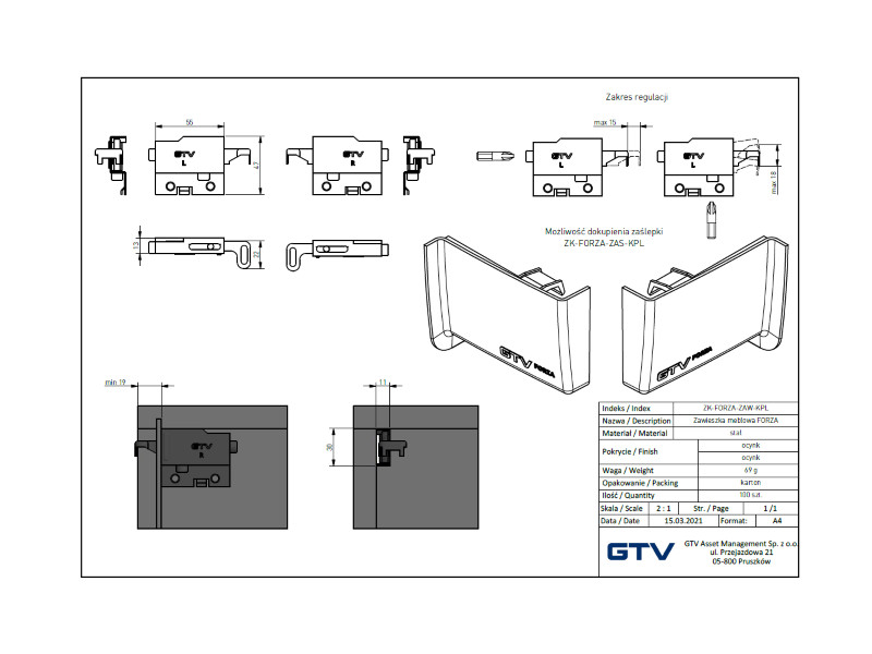 Пiдвic кухонний FORZA лівий правий (навантаження 130 кг) ZK-FORZA-ZAW-KPL GTV