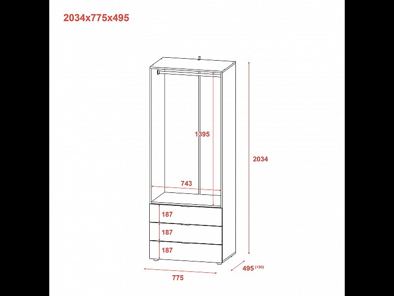 Висота, мм: 2050