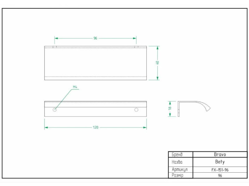 Ручка Bravo Bety 96 мм алюміній FX-151-96-112