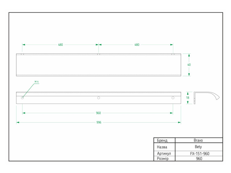 - Довжина, мм: 996