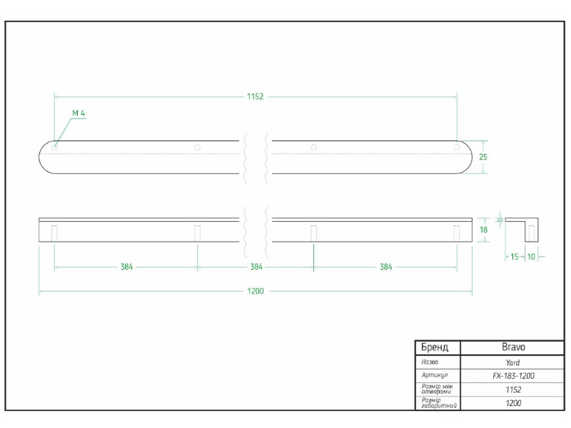 - Довжина, мм: 1200