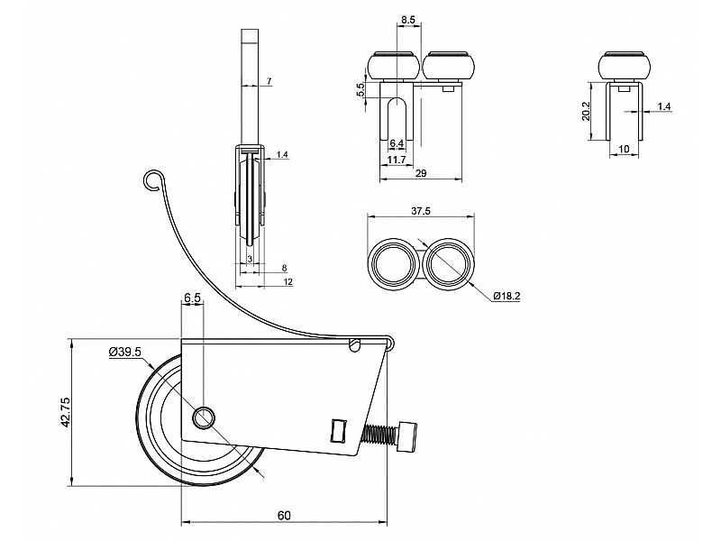 - Комплектация изделия: Ролик верхний - 2 шт, ролик нижний - 2 шт, шуруп - 6 шт