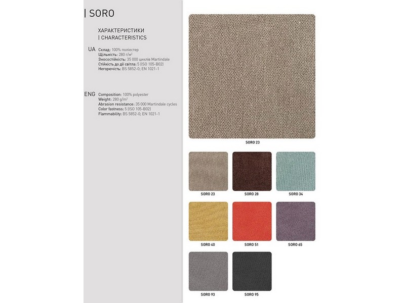 - Матеріал: Тканина SORO