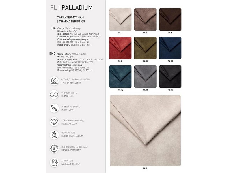 - Матеріал: Тканина PALLADIUM