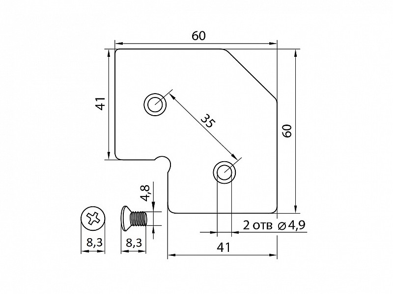Комплектація виробу: Кутник, гвинт - 2шт