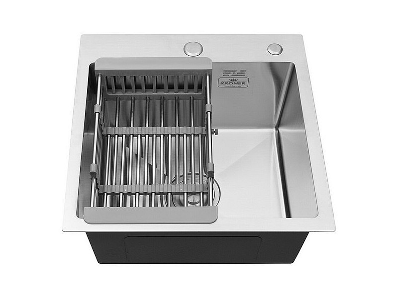 Кухонная мойка Kroner KRP 4545HM — это сочетание современного дизайна и высококачественных материалов. Изготовленная из нержавеющей стали, мойка имеет толщину материала 3 мм в верхней части и 1 мм в стенках, что обеспечивает устойчивость к износу и долговечность. Её матовая поверхность придаёт элегантный вид, который прекрасно дополняет любой интерьер кухни. Эта модель оснащена переливом, который предотвращает переполнение воды, и комплектуется сифоном, что делает процесс установки проще и быстрее. Отсутствие крыла позволяет сэкономить пространство на кухонной столешнице, а наличие отверстий под смеситель и дозатор обеспечивает максимальный комфорт в использовании. Интегрированный способ монтажа позволяет мойке выглядеть как естественная часть кухонной поверхности, создавая завершённый вид без видимых швов или стыков. Эта мойка станет не только функциональным, но и стильным элементом вашей кухни, подчёркивая современный дизайн помещения.