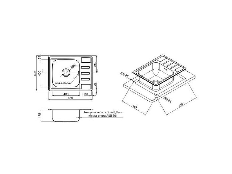 Кухонная мойка Lidz 6350 0,8мм Satin (LIDZ6350SAT8) изготовлена из нержавеющей стали пищевой марки, поэтому изделие прослужит долгие годы. Также стоит отметить неподражаемый дизайн, который украсит любую кухню. Отличное качество и дизайн мойки удовлетворят самые взыскательные пожелания! Мойка выполнена с рабочей чашей, ребристым крылом для сушки посуды и размораживания продуктов. Монтируется врезным способом в отверстие в столешнице.