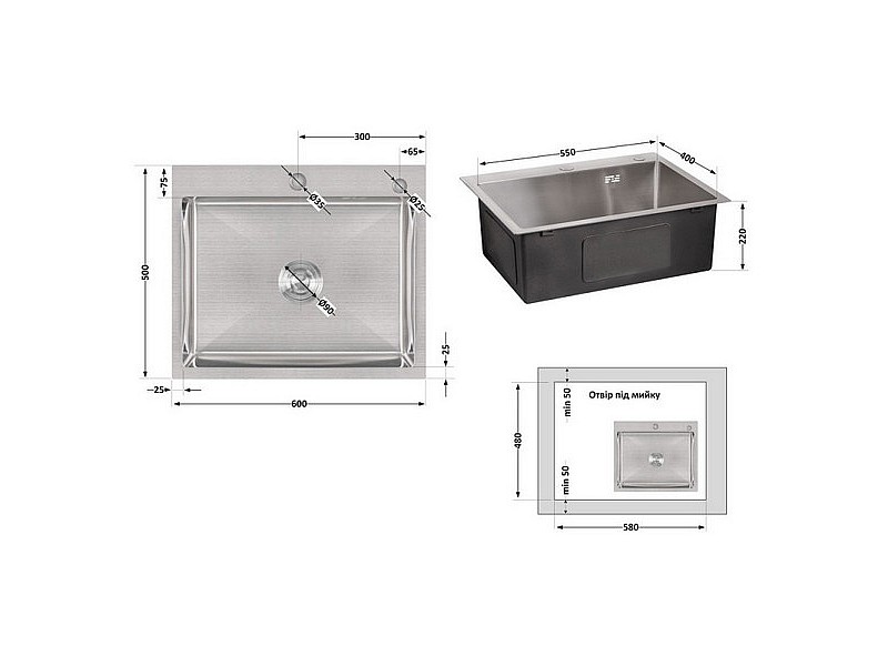 Комплектация изделия: Мойка, сифон, слив/перелив, корзинчатый вентиль, дозатор, крепеж.