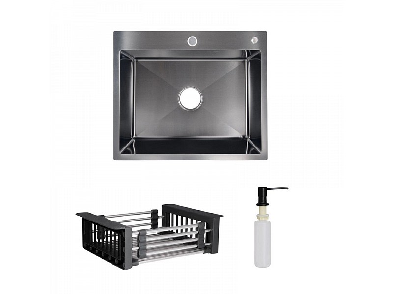 Комплект Lidz Handmade H6050B (BlackPVD) представляє чорну інтегровану мийку з дозатором і кошиком Lidz K01B, створюючи гармонійний ансамбль для вашої кухні.