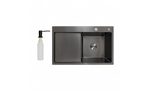 0.00 грнМийка нержавіюча LIDZ H7849L PVD Black Brush 3,0/1,0 мм з дозатором крило зліва чoрний