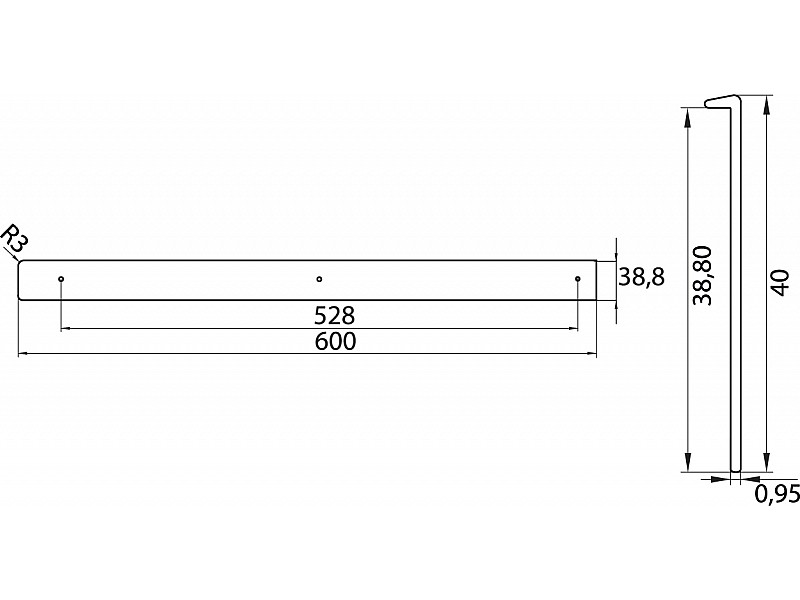 0.00 грнНакладка для стільниці 38мм Алюміній R3 права ДС