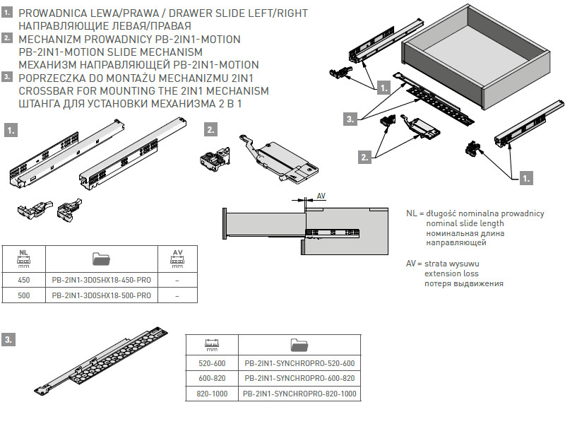 Направляюча Modern Slide Pro повн. Висуву 18мм L-450 SOFT CLOSE PUSH TO OPEN PB-2IN1-3D0SHX18-450-PRO GTV