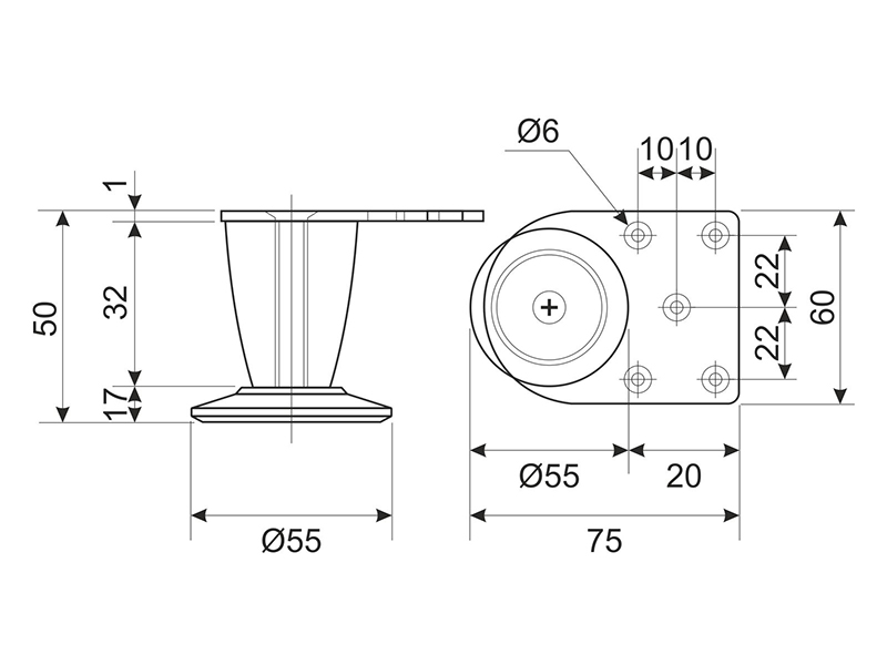 - Діаметр, мм: 55