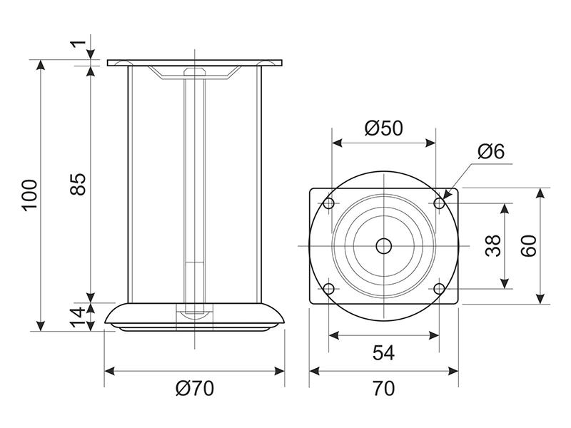 Ніжка DZ 14/100 G2 Хром H-100мм D-50 мм ДС ЄвроЛайн