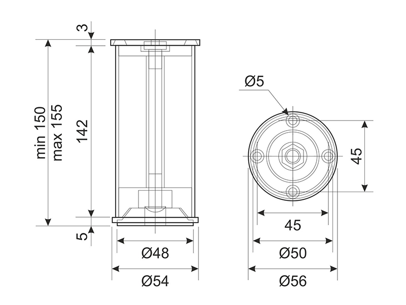 Ніжка меблева регульована DA 11/150 AL/G2 Алюміній / Хром ДС СтандартЛайн