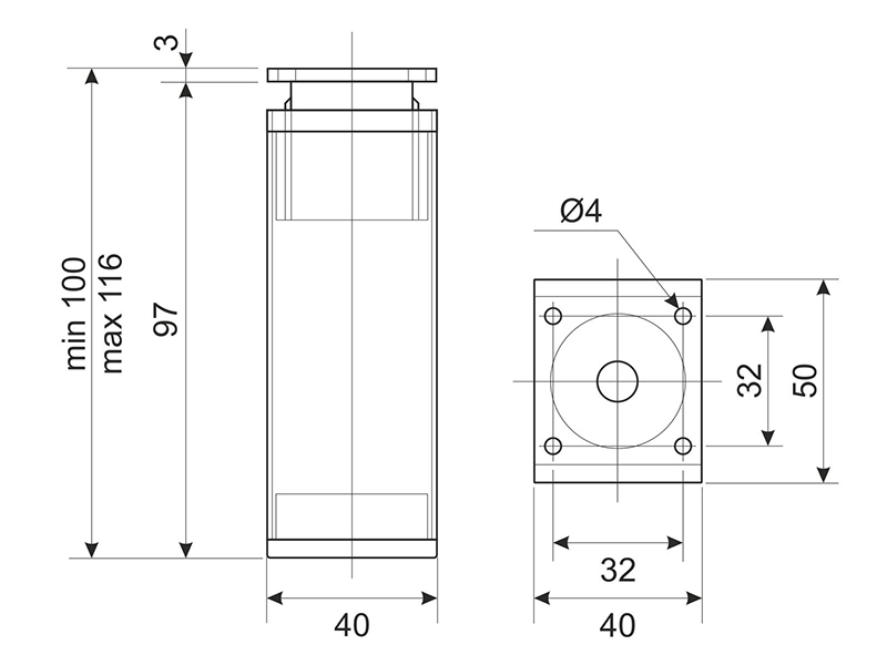 0.00 грнНіжка регульована RFA 044/100-R Хром H-100мм 40х40мм ДС