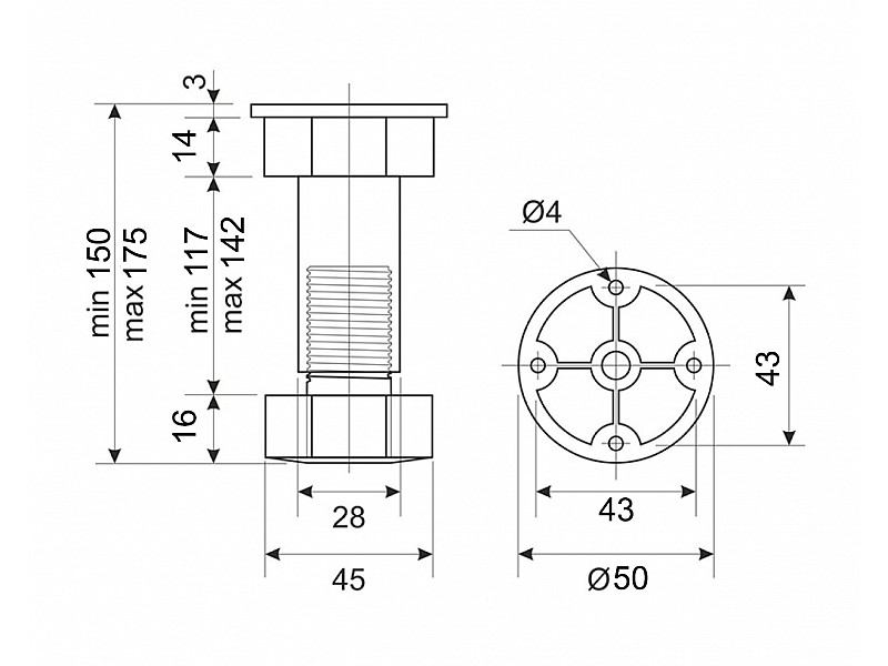 - Тип опоры: Регулируемая
