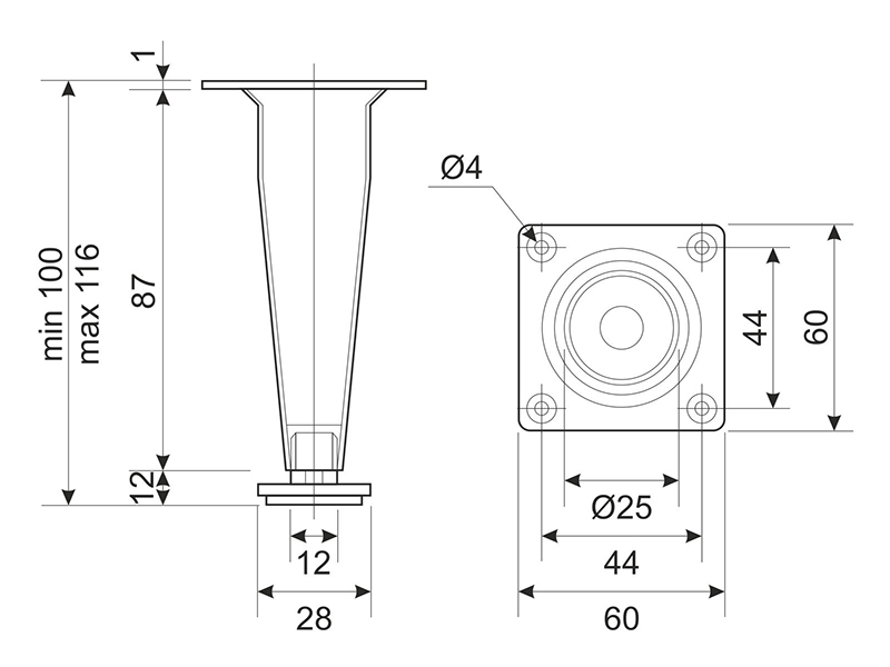 0.00 грнНожка регулируемая NL25/100 h-100мм G2 Хром ДС СтандартЛайн