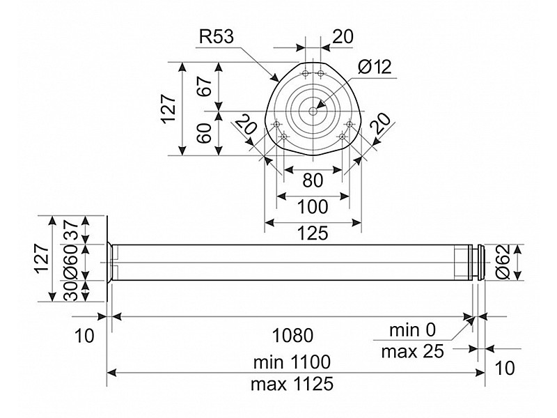- Регулювання по висоті, мм: 0-25
