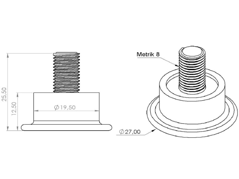 Опора М8 регульована чорна без планки