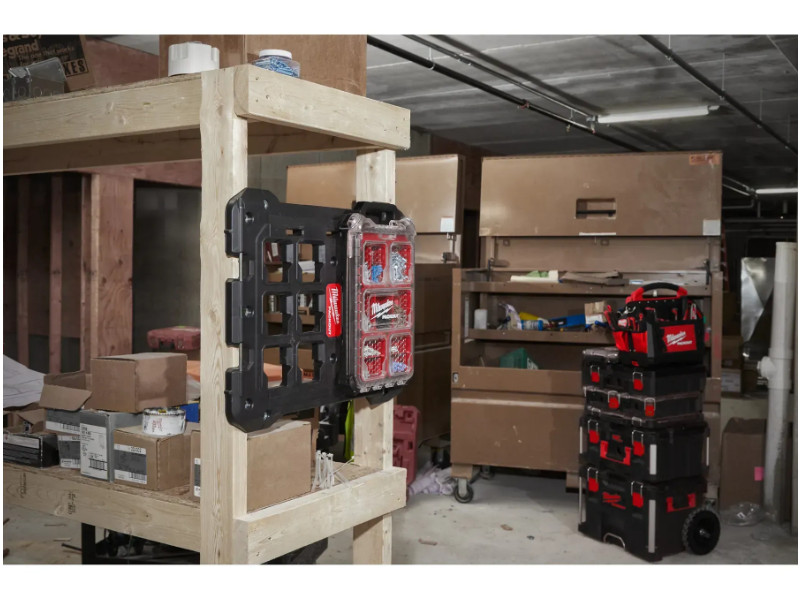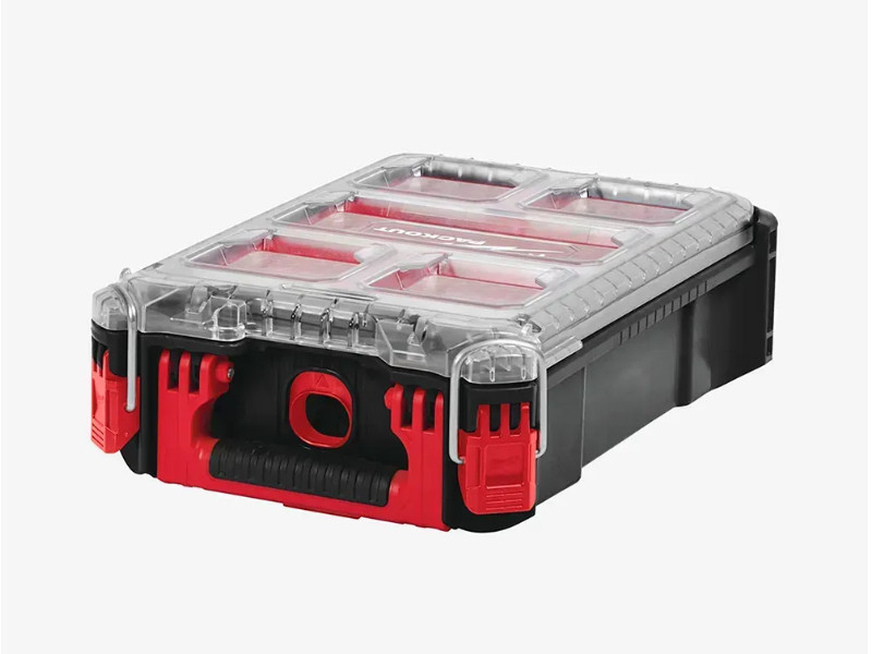 IP65 защита от попадания капель дождя и строительной пыли. Место для подвесного замка. Замки крышки усилены металлическими элементами. Внутренние съемные контейнеры. Могут устанавливаться рядом с рабочим местом для быстрого доступа или вешаться на стену. Содержимое лотков не пересыпается во время транспортировки благодаря специальной форме крышки. Часть модульной системы хранения PACKOUT™. Сконструирован с помощью ударопрочных полимеров для длительного срока службы в условиях строительной площадки.