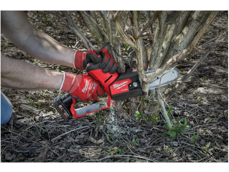 HATCHET™ цепная садовая пила обеспечивает до 120 разрезов брусьев твердых пород древесины размером 75х75мм на одном заряде аккумулятора 4,0Ач. Разработана с учетом требований профессионалов ландшафтного дизайна по эргономике, производительности и надежности. Компактная и легкая для работы в условиях ограниченного пространства. Прозрачный резервуар для контроля за уровнем масла. Легкодоступная система регулирования натяжения цепи. Кнопка выключателя с функцией регулировки количества оборотов двигателя дает пользователю полный контроль над рабочим процессом. Полностью металлические шипы дают больший рычаг при резке. Автоматическая смазка цепи. Встроенное в корпус инструмента место хранения ключа. Универсальная аккумуляторная система: работает со всеми аккумуляторами MILWAUKEE® M12™. Комплектация Пила цепная M12 FUEL FHS-0 – 1 шт. Шина и цепь 15см (6'') Oregon - 1 шт. Чехол для цепи – 1 шт. Ключ – 1 шт. Картонная упаковка.