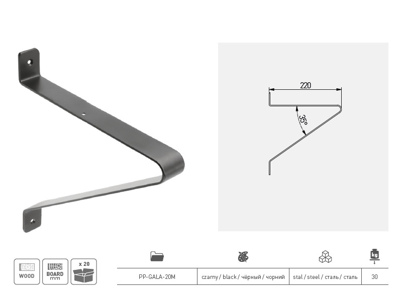 0.00 грнПолицетримач GALA Чорний Матовий PP-GALA-20M GTV