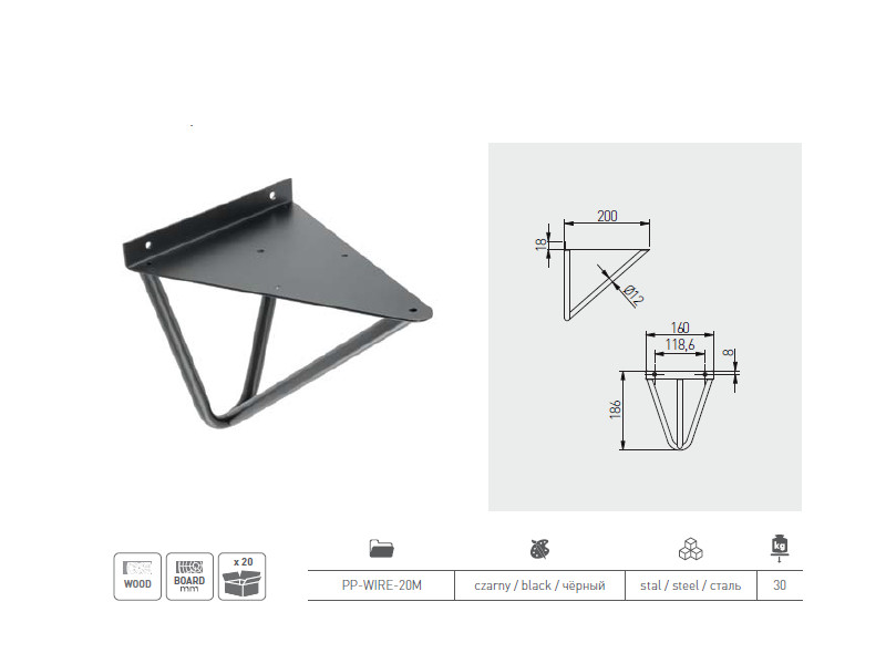0.00 грнПолицетримач WIRE Чорний Матовий PP-WIRE-20M GTV