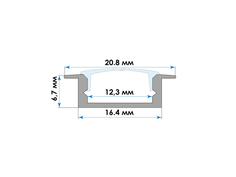 0.00 грнПрофіль алюмінієвий LED врізний неанод. матовий розсіювач 6,7*16,4 2м ПФ-19/1
