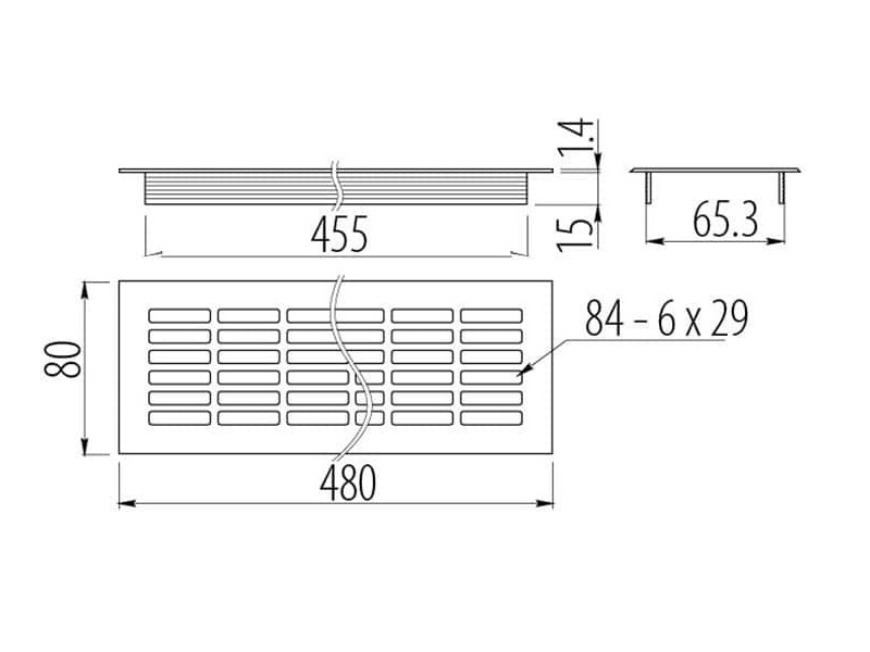 Решітка вентиляційна алюміній 480х80мм