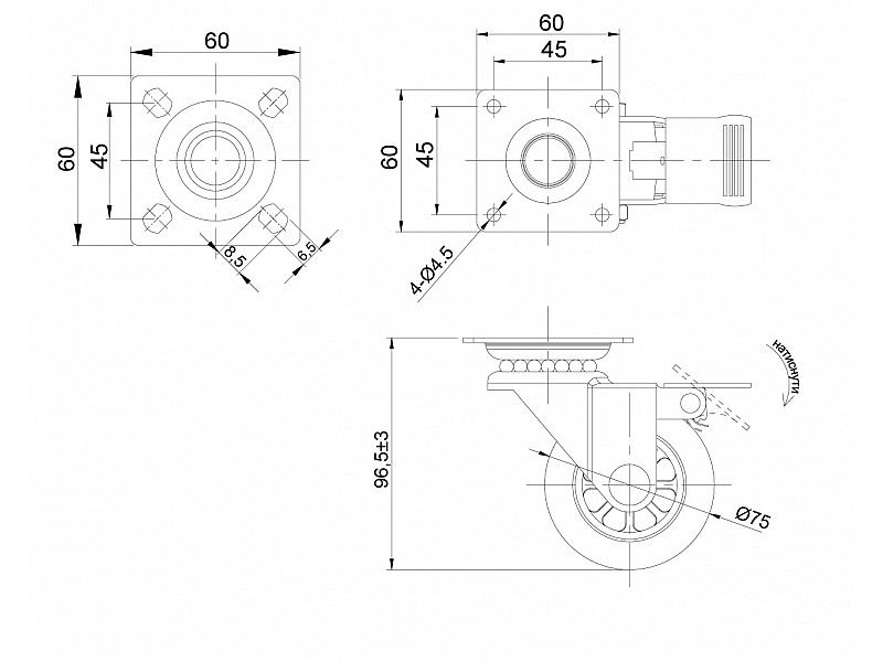 0.00 грнРолик d-75 мм поліуретановий з пластиною і гальмом ДС